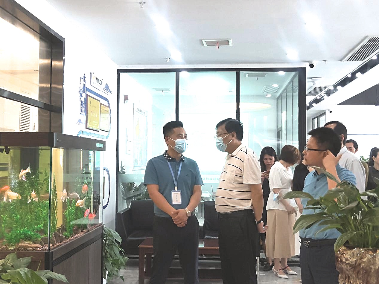 驻足会议室一侧,视察组一行领导结合企业文化墙与现场讲解,初步了解公司整体运营、市场布局、战略客户与工程案例。